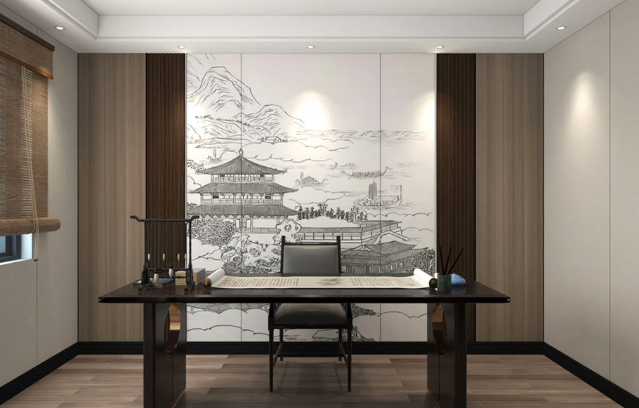 Parete di fondo per lo studio domestico: nuovo stile cinese